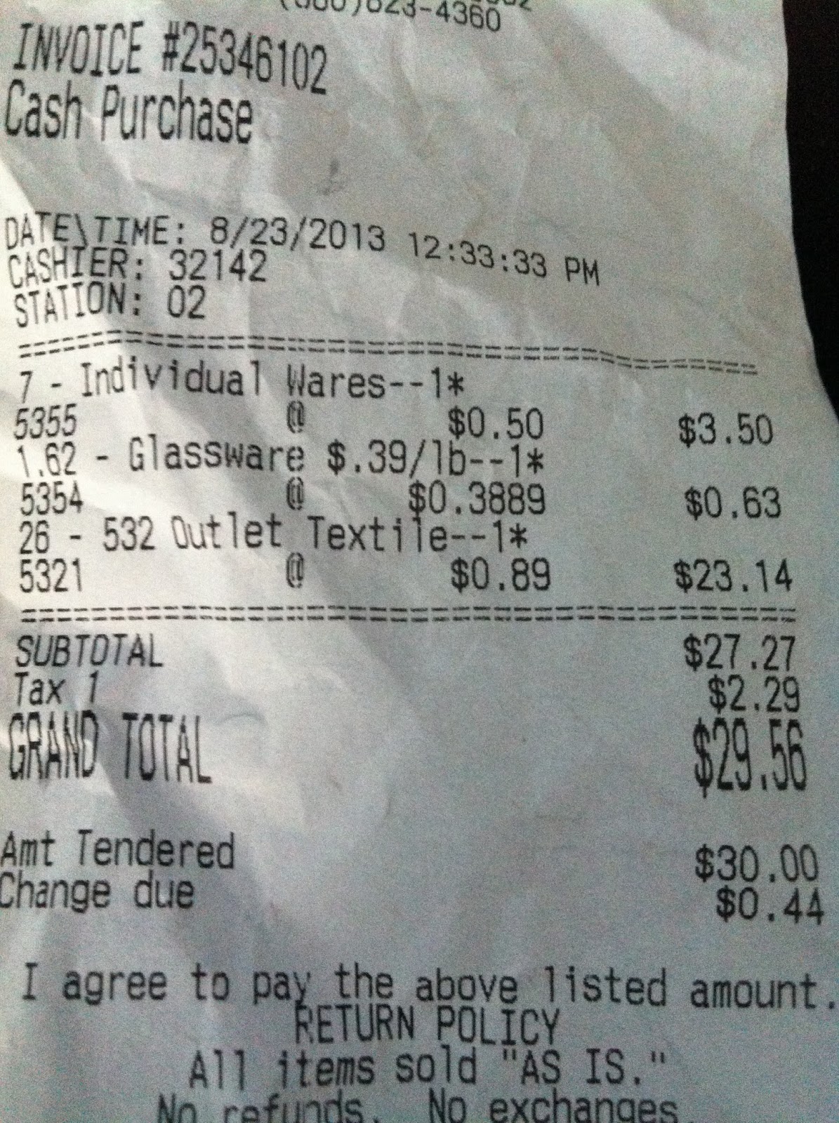 Here’s my first official Goodwill Outlet Haul, complete with receipt!