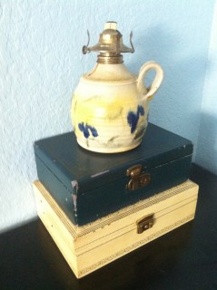 Vintage Boxes and A Vintage Ceramic Oil Lamp